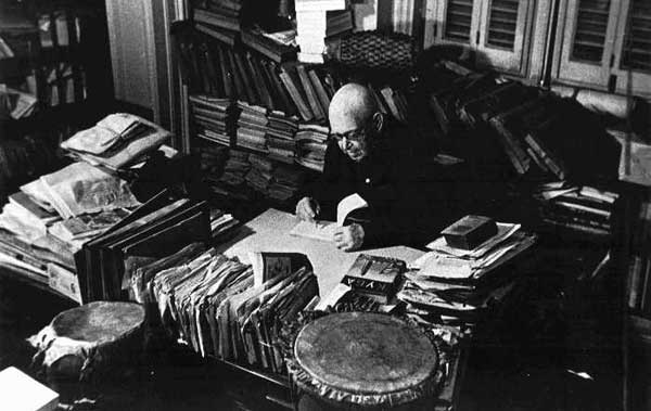 Retrato de Fernando Ortiz en la biblioteca de su casa, entre sus libros